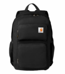 This durable, rain-resistant, 28L pack is equipped with sweat-wicking shoulder straps and secure storage compartments to keep your gear safe everywhere from the job site to the camp site. 1200D heavy-duty polyester. Durable water repellent (DWR). PFAS free water repellent fabric treatment. Large main compartment with dedicated tablet sleeve. Top compartment with dedicated pocket for power pack and cord port. Front zippered organization. Two exterior mesh pockets. Padded compartment with dedicated 15” laptop sleeve. Contour-fit shoulder straps with FastDry® sweat-wicking technology. Padded air mesh back panel with a webbing strap that can fit over dual trolley handle of wheeled bag. Padded shoulder straps. Carhartt® label sewn on front top pocket. Carhartt® zipper pulls. DuravaxTM abrasion-resistant base. Dimensions: 18"h x 12"w x 10"l Volume: 1,709 cu. in./28L.